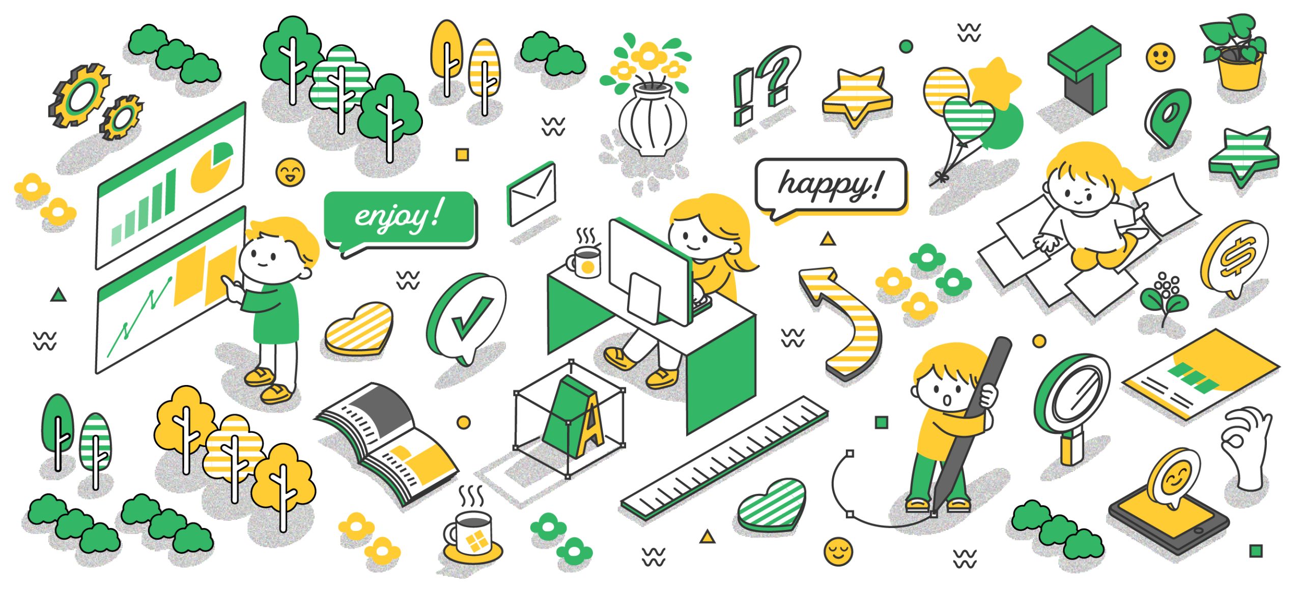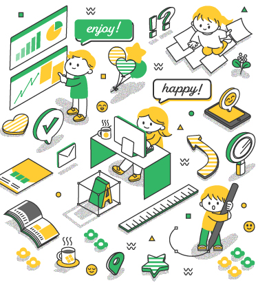 お客様のご要望に応えられる幅広い画風を駆使し、イラストを添えたデザインが得意です。