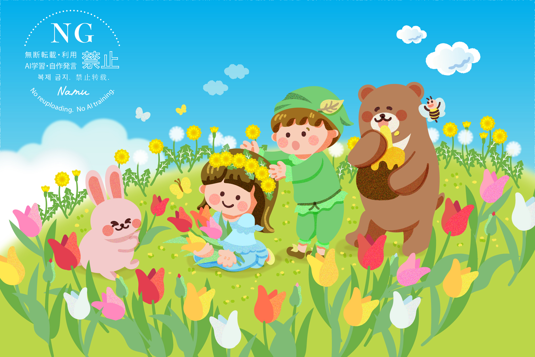 チューリップとお花の妖精 / 川で遊ぶ子どもたち / 歌をうたおう / 公園で遊ぶ子どもたち
